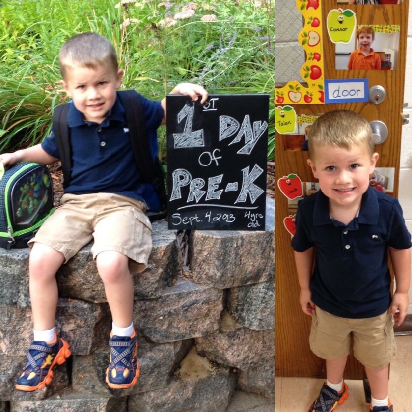 Apparently I didn’t get the sign memo for Talan’s first year of Preschool. Or actually, I think I did make a sign but I wasn’t happy with it. Oh well. But here’s my trip down memory lane…with new shoes and all.