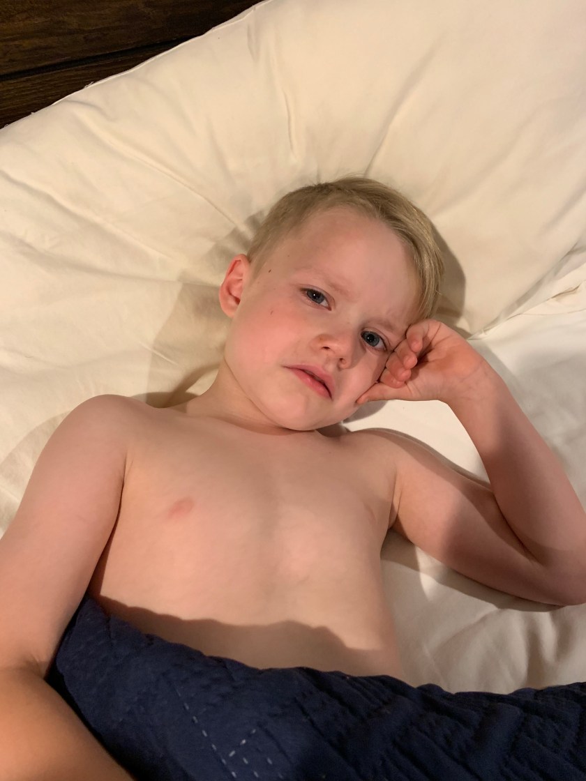 And then, in the middle of the night he got sick and woke up with a fever this morning…I think my heart is still beating out of my chest.
