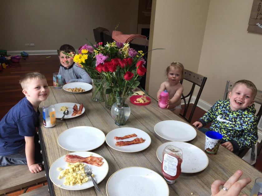 Mother’s Day for me started out with our sweet #3 waking up with croup at 4am and the 2 big boys yelling on the monitor in a panic, “MOM! MOM!” Travis ran into Talan at the top of the stairs as he was frantically waiting for us to get upstairs.